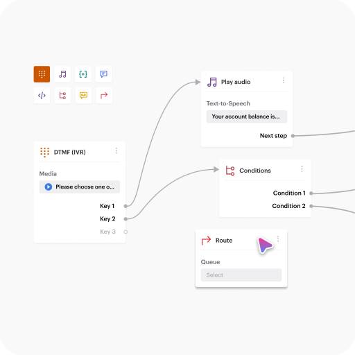 With Flow Builder, you can easily configure number-based actions that route calls or trigger specific responses, streamlining call routing and minimizing wait times for customers.