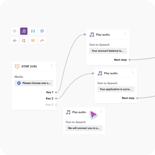 Voiso’s TTS functionality is integrated into Flow Builder, a visual tool for designing call flows. You can use TTS to create dynamic and personalized messages that are triggered by different events in the call flow. For example, you could use TTS to: