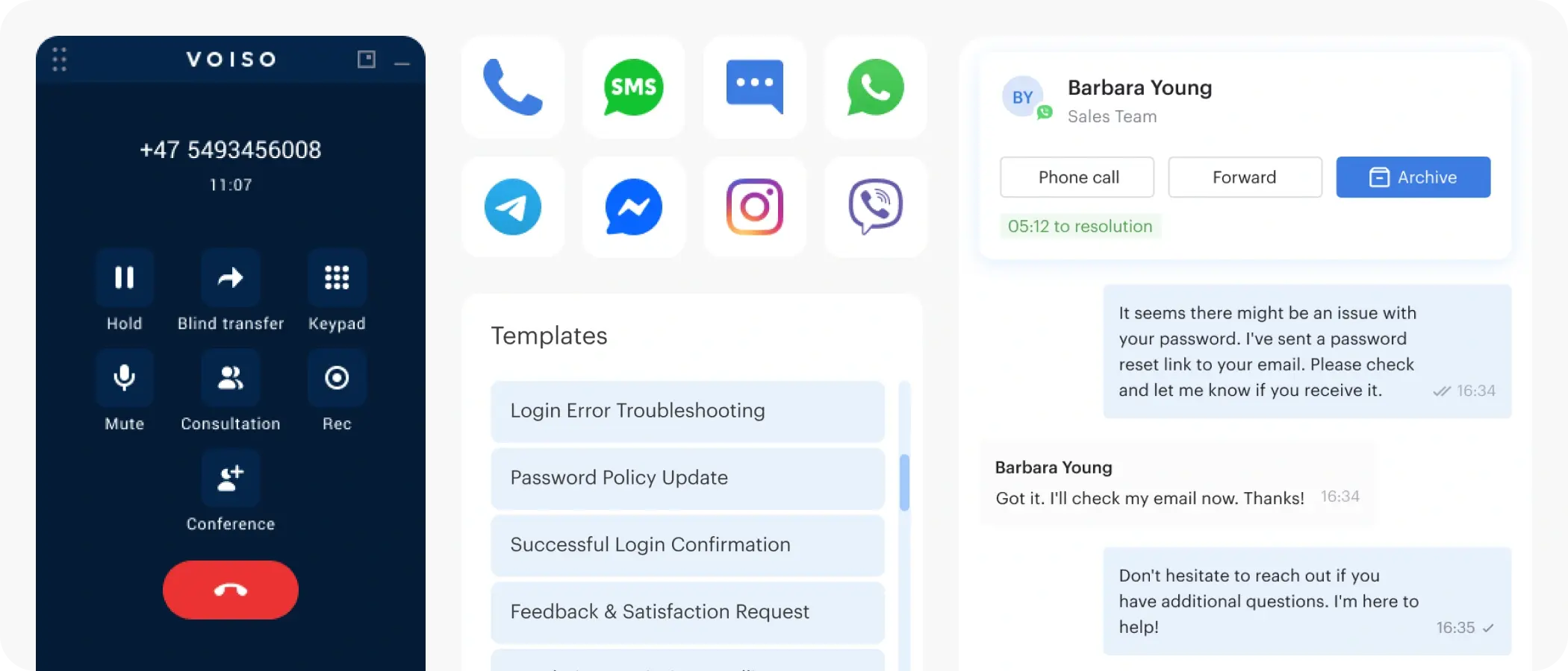 Connect with customers on their favorite platforms with Voiso’s Messaging App integration.
