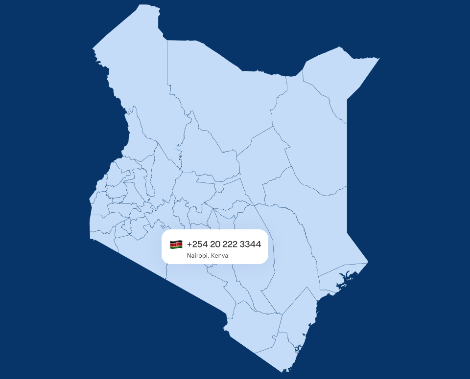 | Local Number | A geographic number whose digit structure contains regional significance, tied to a specific city or area. These numbers help establish a local presence, fostering trust among local customers. | 20 (Nairobi), 40 (Mombasa), and more |